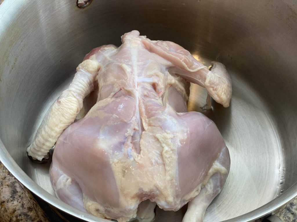 1. 껍질을 벗겨낸 후 기름도 제거하고 깨끗이 씼었어요. 유기농 작은 닭이라 기름이 많지는 않았어요. 빨리 하느라 남은 기름과 껍질은 그냥 넣었어요.